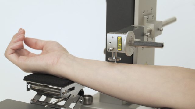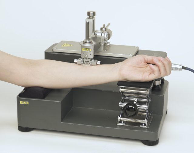 指先相当の硬度を有した接触子です。測定面には指紋を模したテクスチャーが施され、触り心地を定量的に評価します。 【論文はこちら】